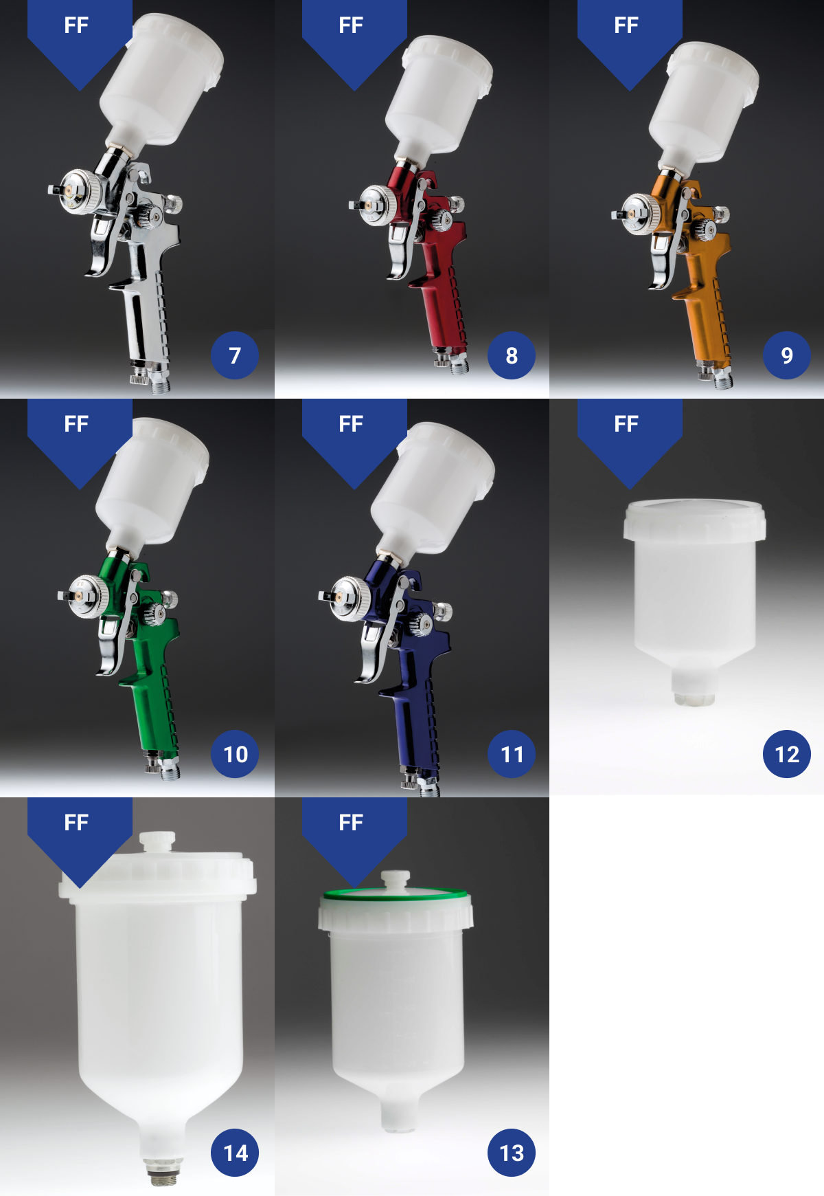 HVLP Minilackierpistolen mit 0.8mm Düsen in verschiedenen Farben verfügbar. Sie können Ersatzlackierpistolenbecher und Düsensätze separat kaufen.