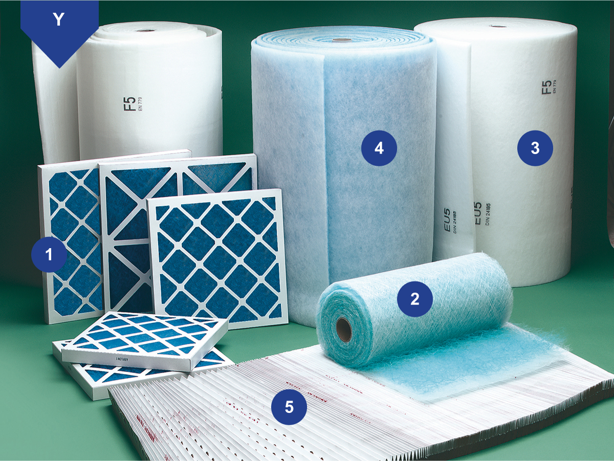 A selection of spraybooth filters from andreae filters, box panel filters, pre-filters, floor filters to ceiling filters.