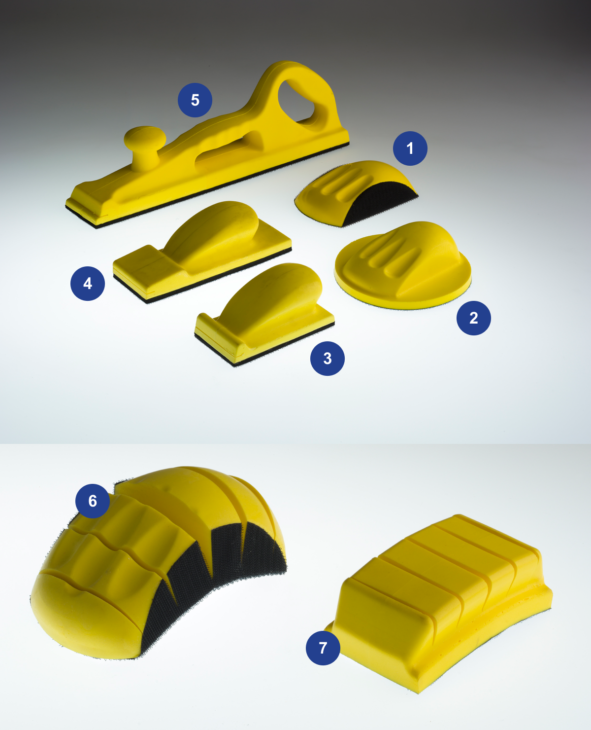 Blocos individuais de lixamento manual em diferentes formatos e tamanhos para ajudar na realização do trabalho.